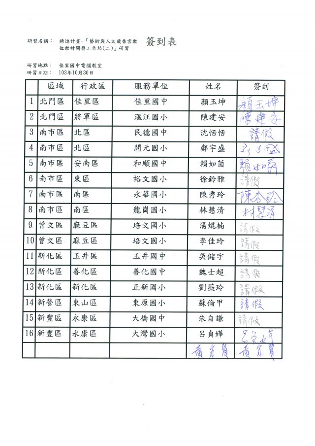 | 103 | 1030925佳里國中含簽到表.doc | 顏玉坤 | 115 | ||