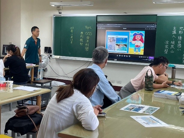 2. 海洋教育輔導團(柳營國小涂家聲老師)分享OSS海洋科學序列教材_3.1人類與海洋的相互關聯,透過入校教學及公開說課、觀課及議課,彼此交流不同的教學模式與經驗分享,增加教師對OSS海洋科學序列教材教學的熟悉度。