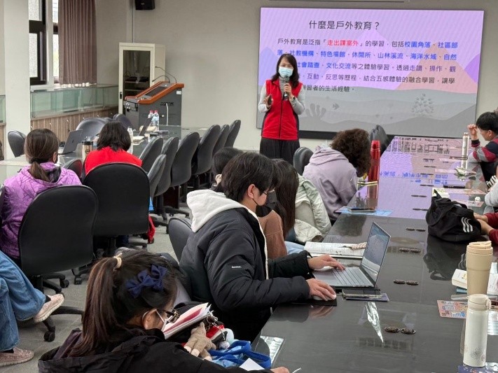 2. 海洋教育議題輔導團邱馨慧老師分享戶外教育及海洋教育的意涵與示例,以111年度戶外教育課程模組及教案徵選特優西門實小的課程為例進行說明分享。