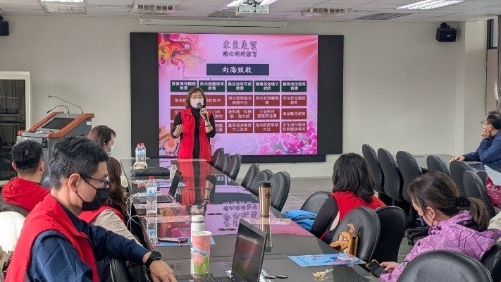 1. 海洋教育議題輔導團總召喜樹國小黃懷慧校長分享臺南市戶外教育與海洋教育資源中心推動戶外教育及海洋教育的現況,並進行海洋教育議題輔導團112學年度成果摘要重點報告。